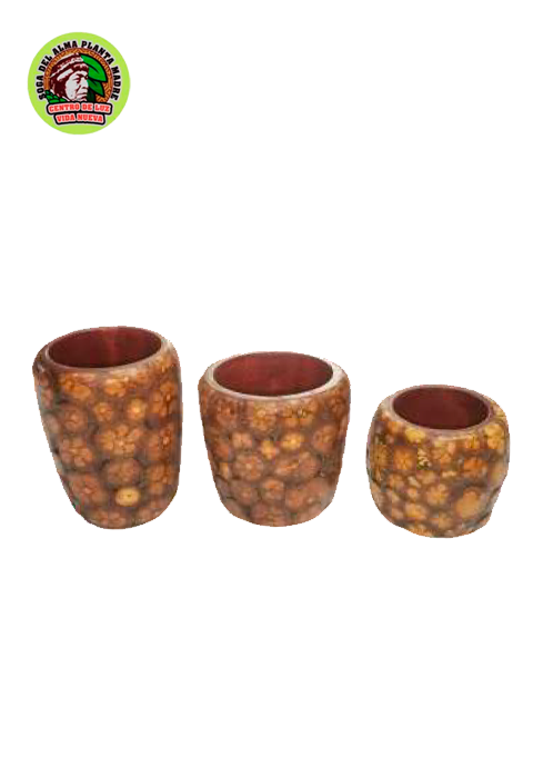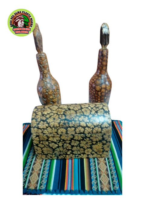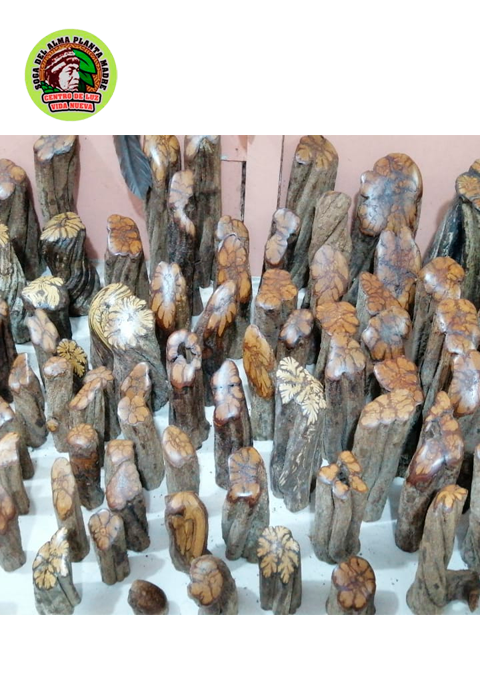 Hecho en madera dura forrados con ayahuasca o planta madre.