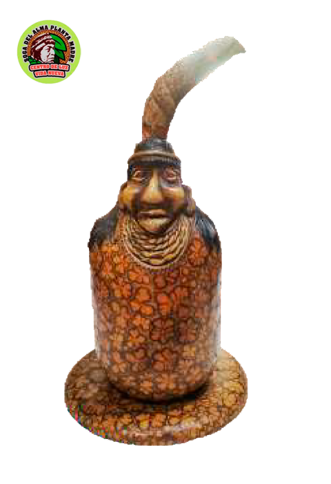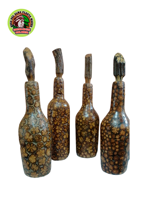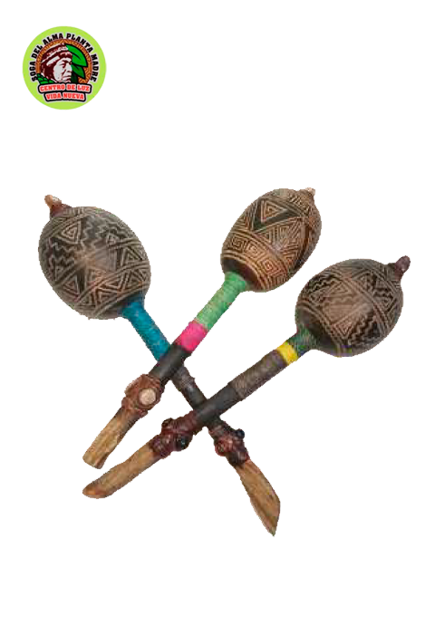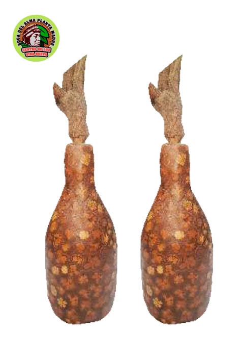 Hecho en madera dura forrados con la planta madre del ayahuasca o soga del alma.