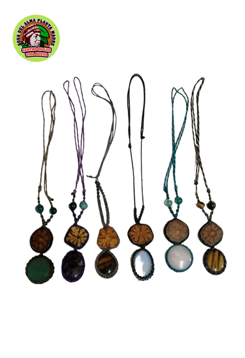 Hecho en soga ancestral de la amazonía peruana para ceremonias con corteza natural de chambira y piedras de energía.